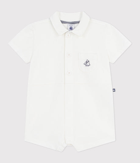 BABIES' SHORT PLAIN COTTON JUMPSUIT WITH A POLO COLLAR
