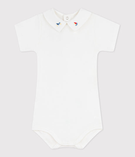 BABIES' SHORT-SLEEVED COTTON BODYSUIT WITH POLO SHIRT COLLAR
