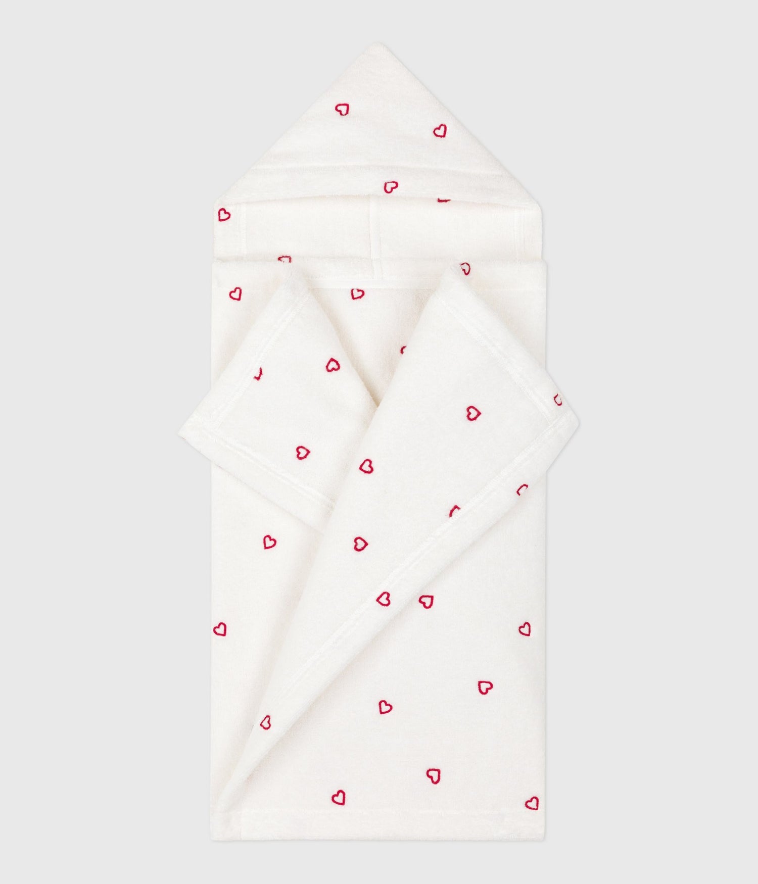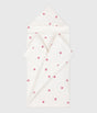 BABY BATH CAPE WITH EMBROIDERED HEARTS IN TERRY
