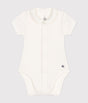 SHORT-SLEEVED UNISEX BODYSUIT MADE FROM PETIT BATEAU'S ICONIC RIB KNIT, A COMFORTABLE, STRETCHY FABRIC.