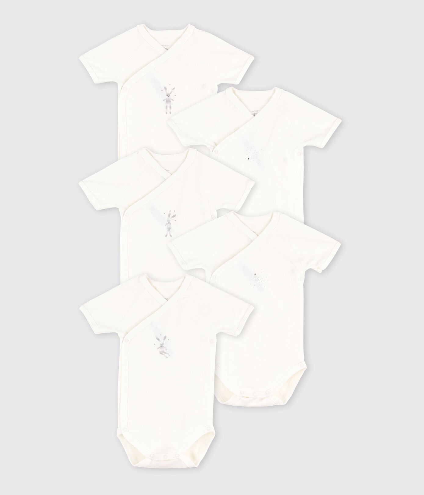 BABIES' SHORT-SLEEVED WRAPOVER ORGANIC COTTON BODYSUITS - 5-PACK