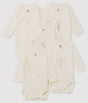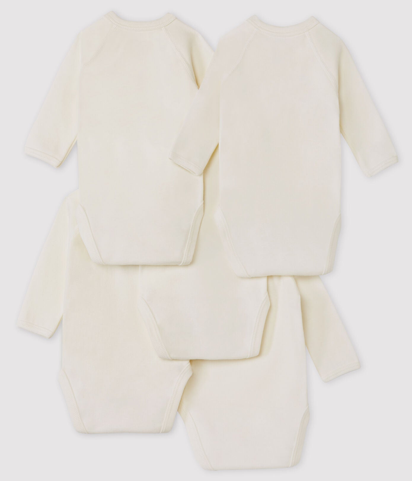 - 5 long-sleeved wrapover bodysuits in Petit Bateau's iconic rib knit.