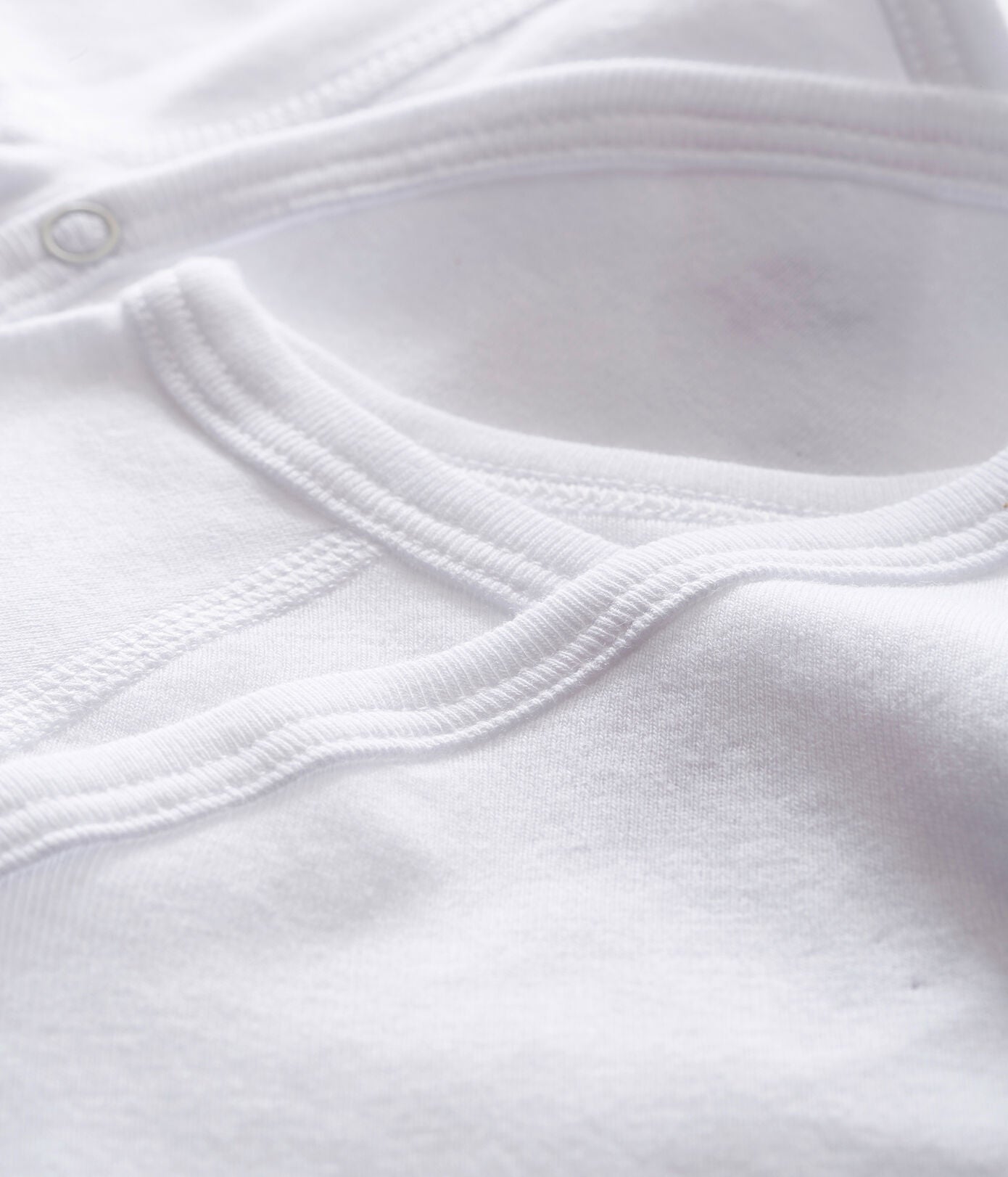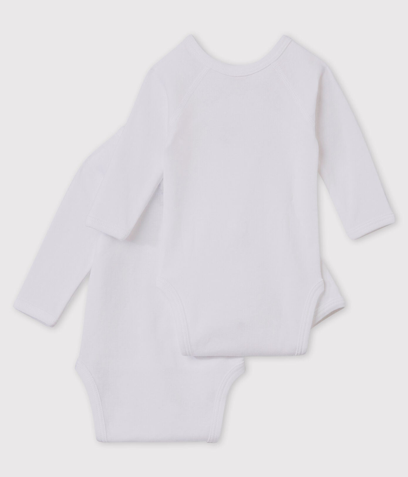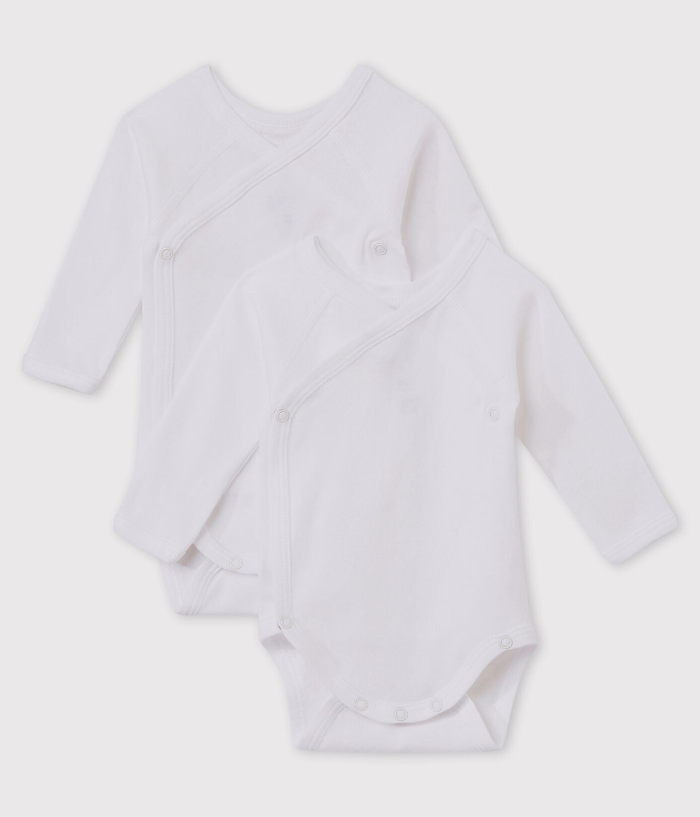 - 2 ribbed long-sleeved newborn bodysuits, in Petit Bateau's classic material.
