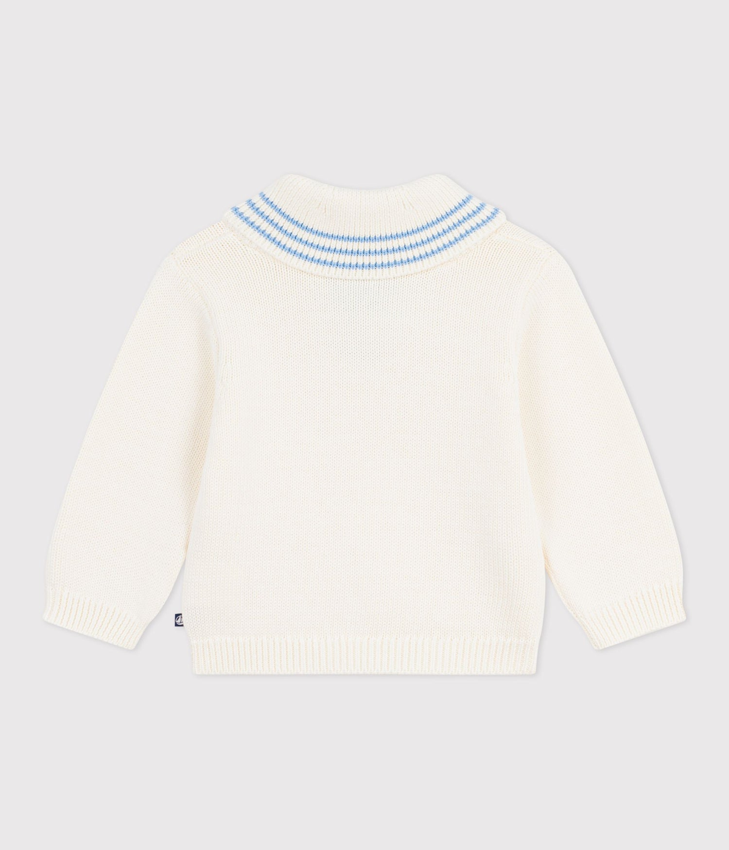 BABIES' STRIPY COTTON JUMPER WITH A SHAWL COLLAR