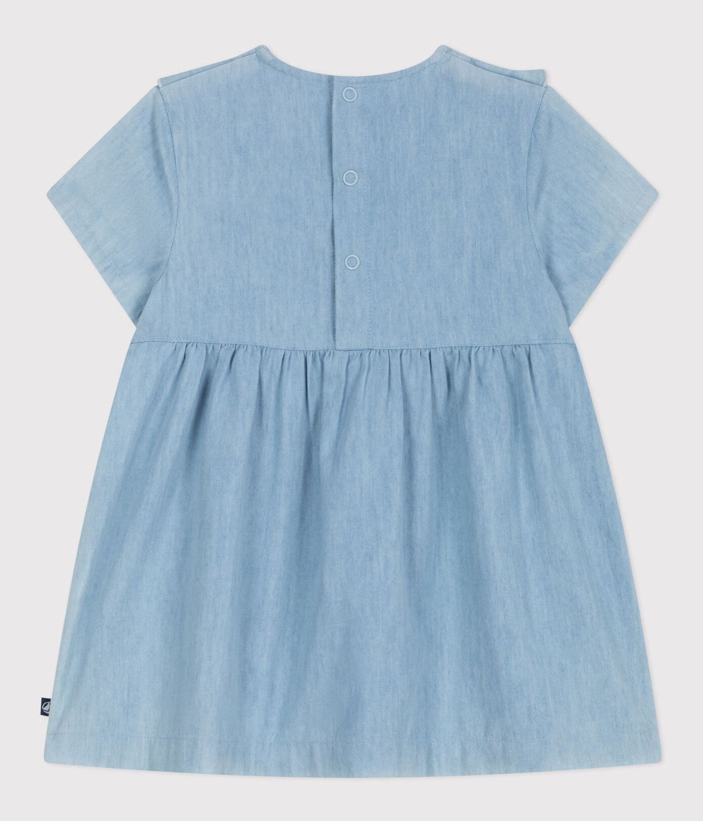 BABIES’ SHORT-SLEEVED COTTON DRESS IN CHAMBRAY, EMBROIDERED WITH HEARTS