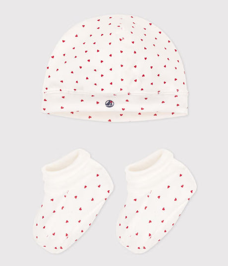 28.000 JODUnit price /UnavailableBABIES' HEART PATTERNED BONNET AND BOOTEES SET