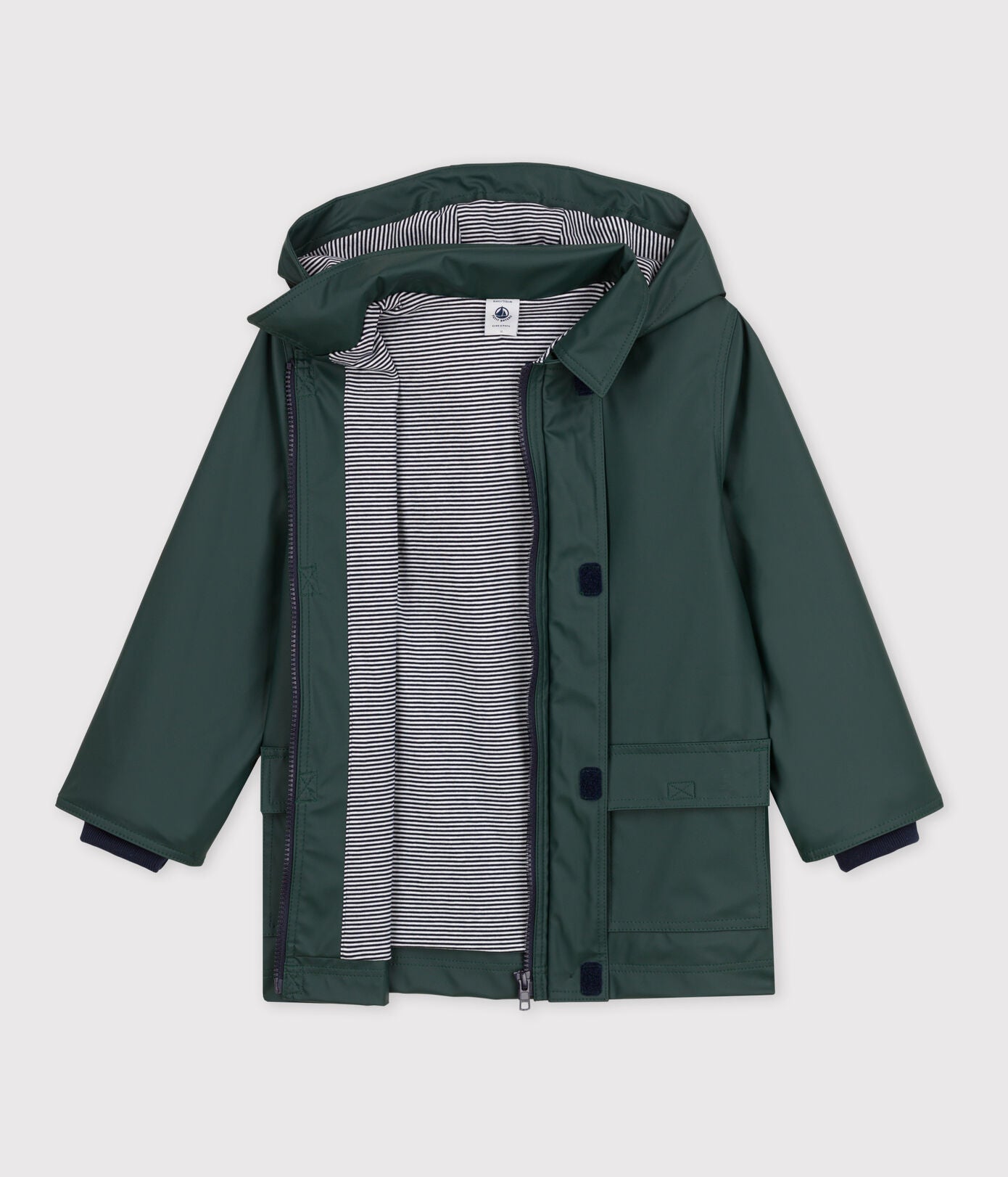 - This raincoat is made from over 40% recycled materials thanks to technology that gives plastic waste a second lease of life. By choosing this product, you will be supporting Petit Bateau in its work protecting the planet.