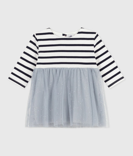 BABIES' LONG-SLEEVED DRESS IN TWO MATERIALS