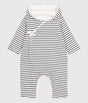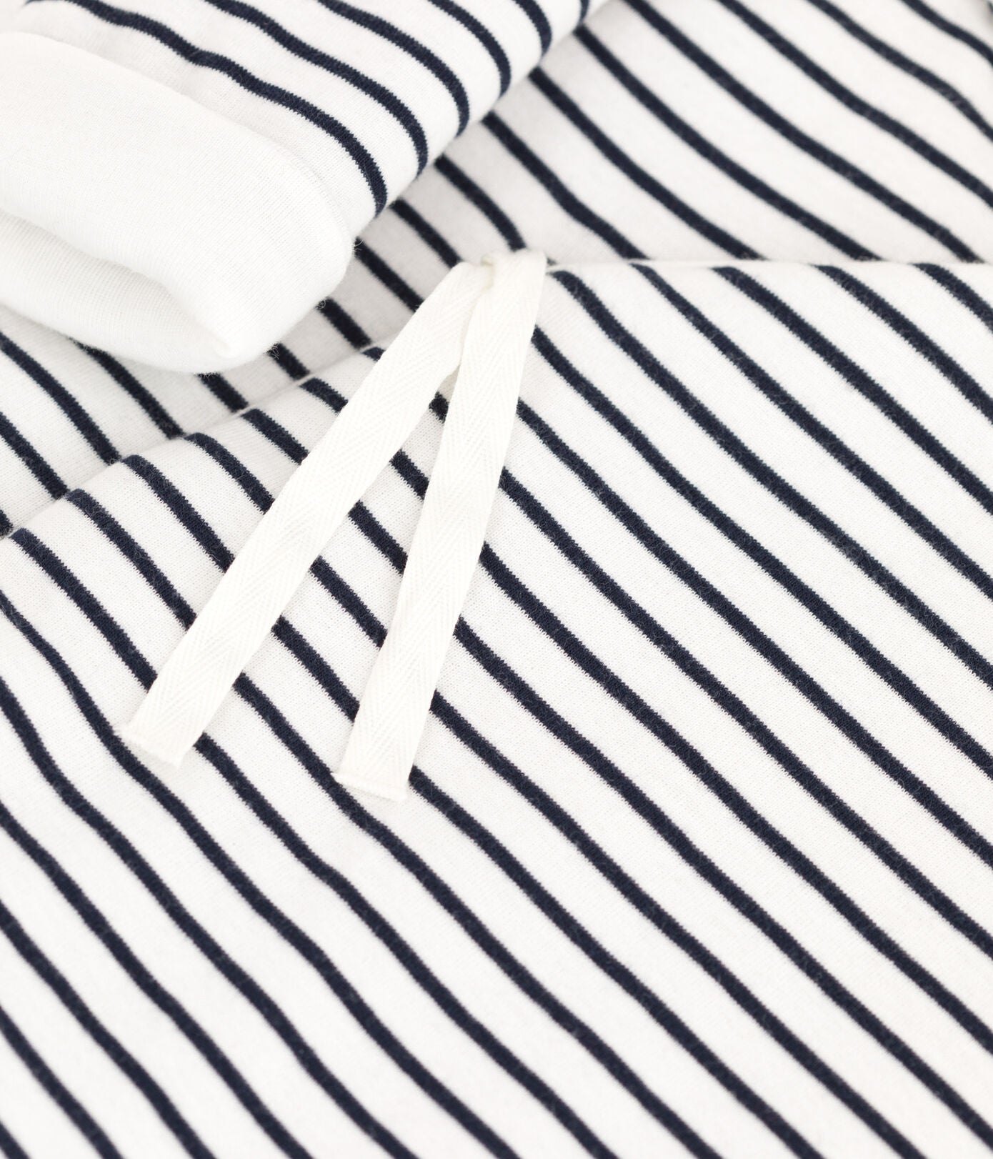 BABIES' HOODED SAILOR STRIPED COTTON JUMPSUIT