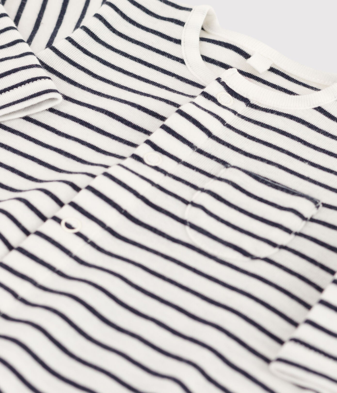 BABIES' STRIPED ORGANIC COTTON LONG PLYSUIT