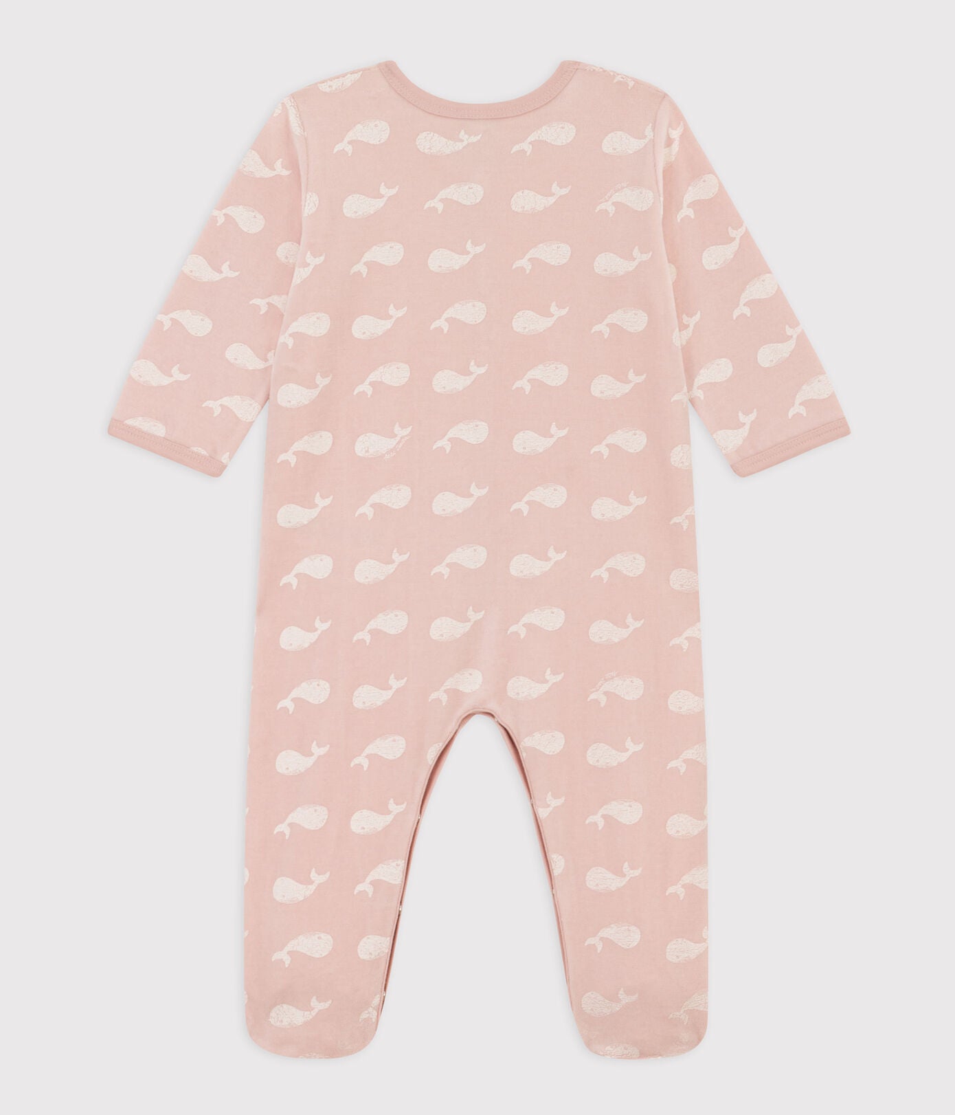 VELOUR PINK WHALE SLEEPSUIT - 12m is backordered and will ship as soon as it is back in stock.