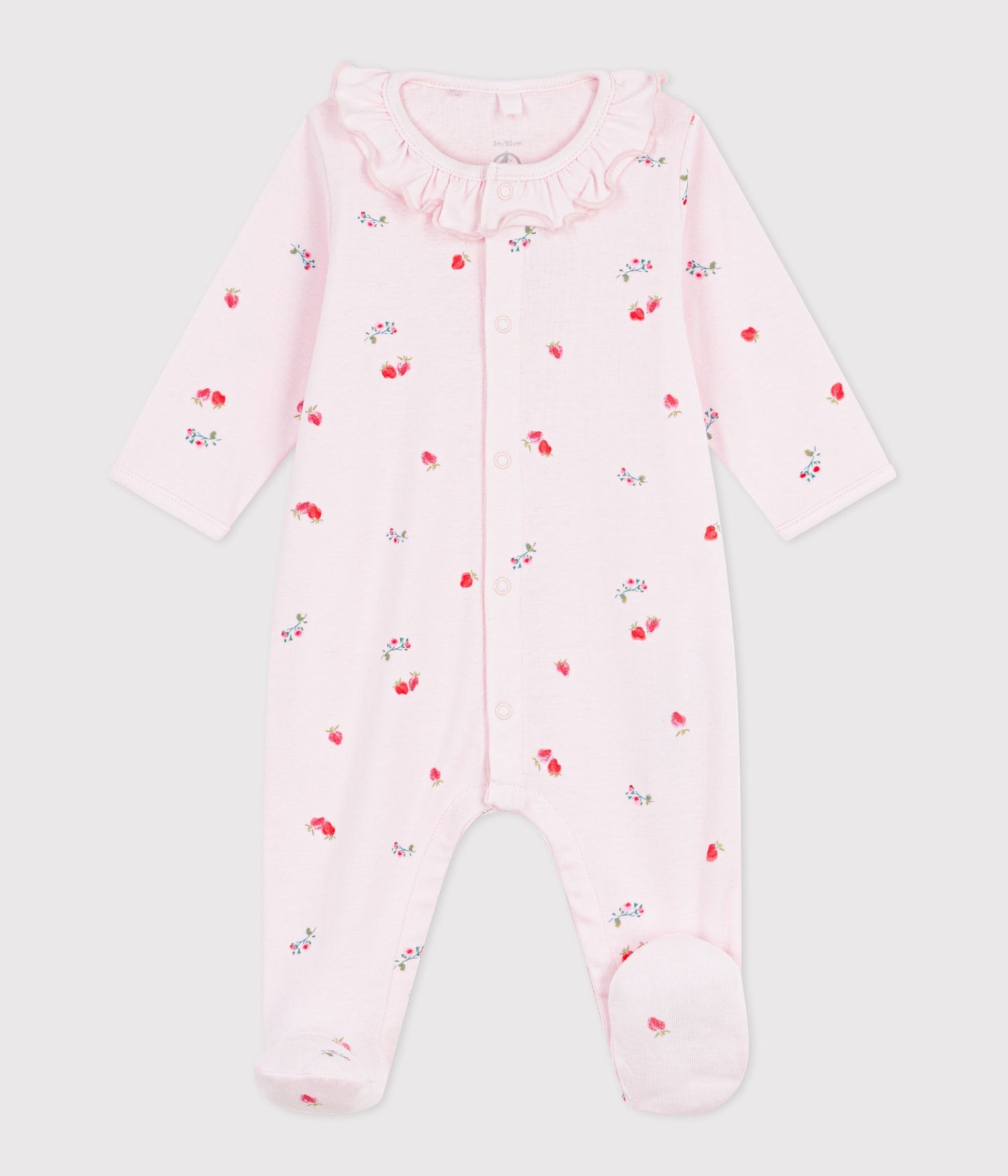 BABIES' FLORAL COTTON PYJAMA SUIT WITH A COLLAR