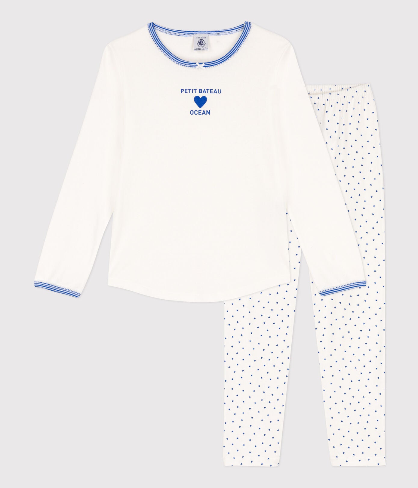 GIRLS' OCEAN HEART COTTON PYJAMAS