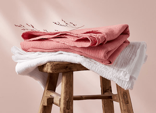 Double cotton gauze is a soft and thin double-layer fabric, which gives it a wispy-light effect. A gap between the two sides makes the fabric light and airy.