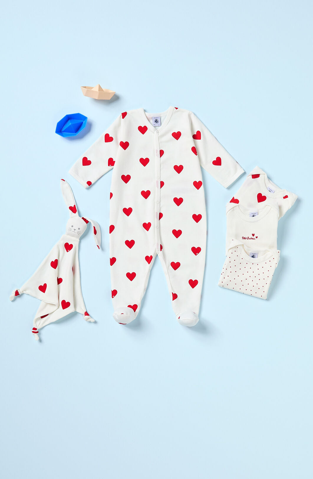 BABIES' RED HEART PATTERN ORGANIC COTTON FLEECE SLEEPSUIT - 1m is backordered and will ship as soon as it is back in stock.