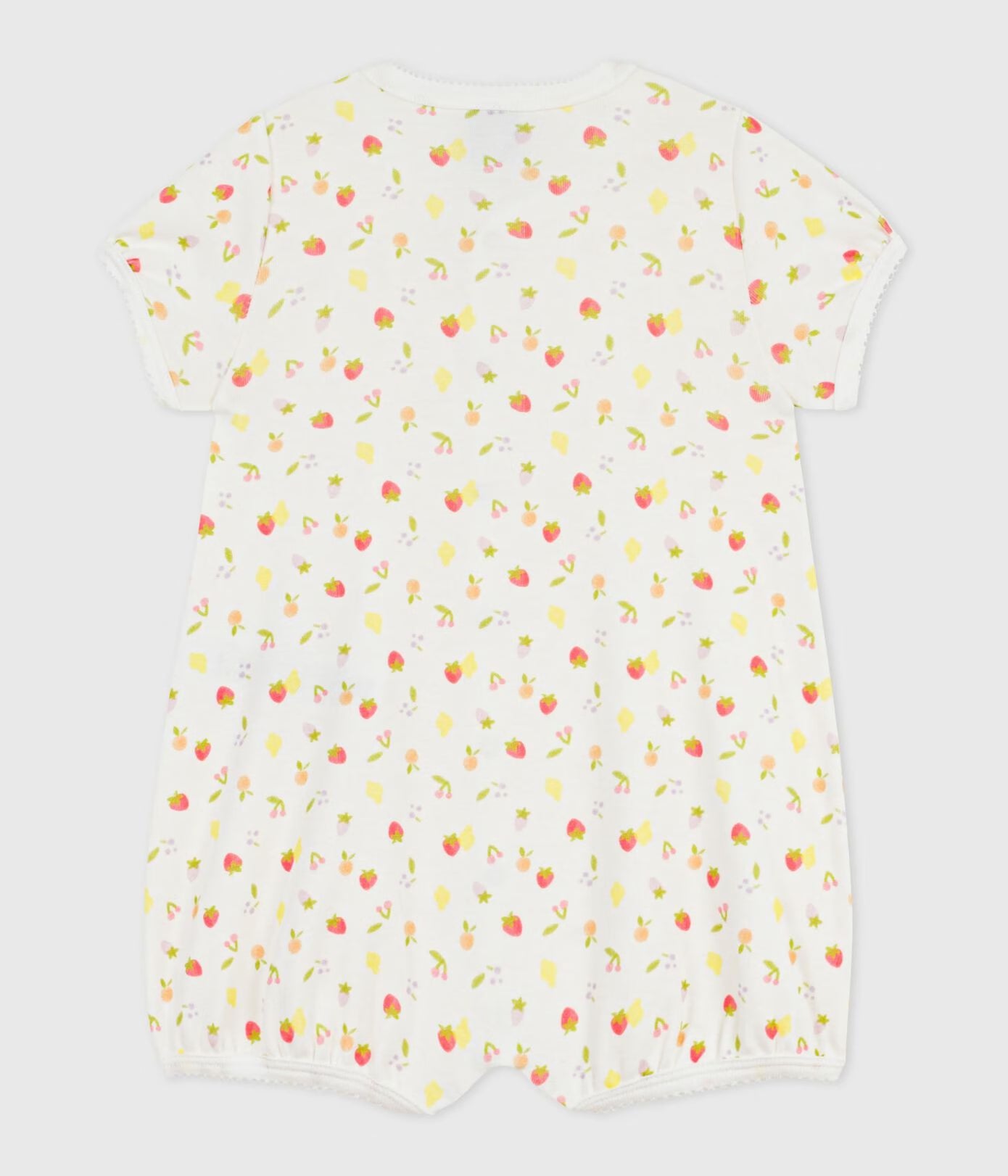 BABIES’ SHORT FRUIT PRINT COTTON JUMPSUIT - 3m is backordered and will ship as soon as it is back in stock.
